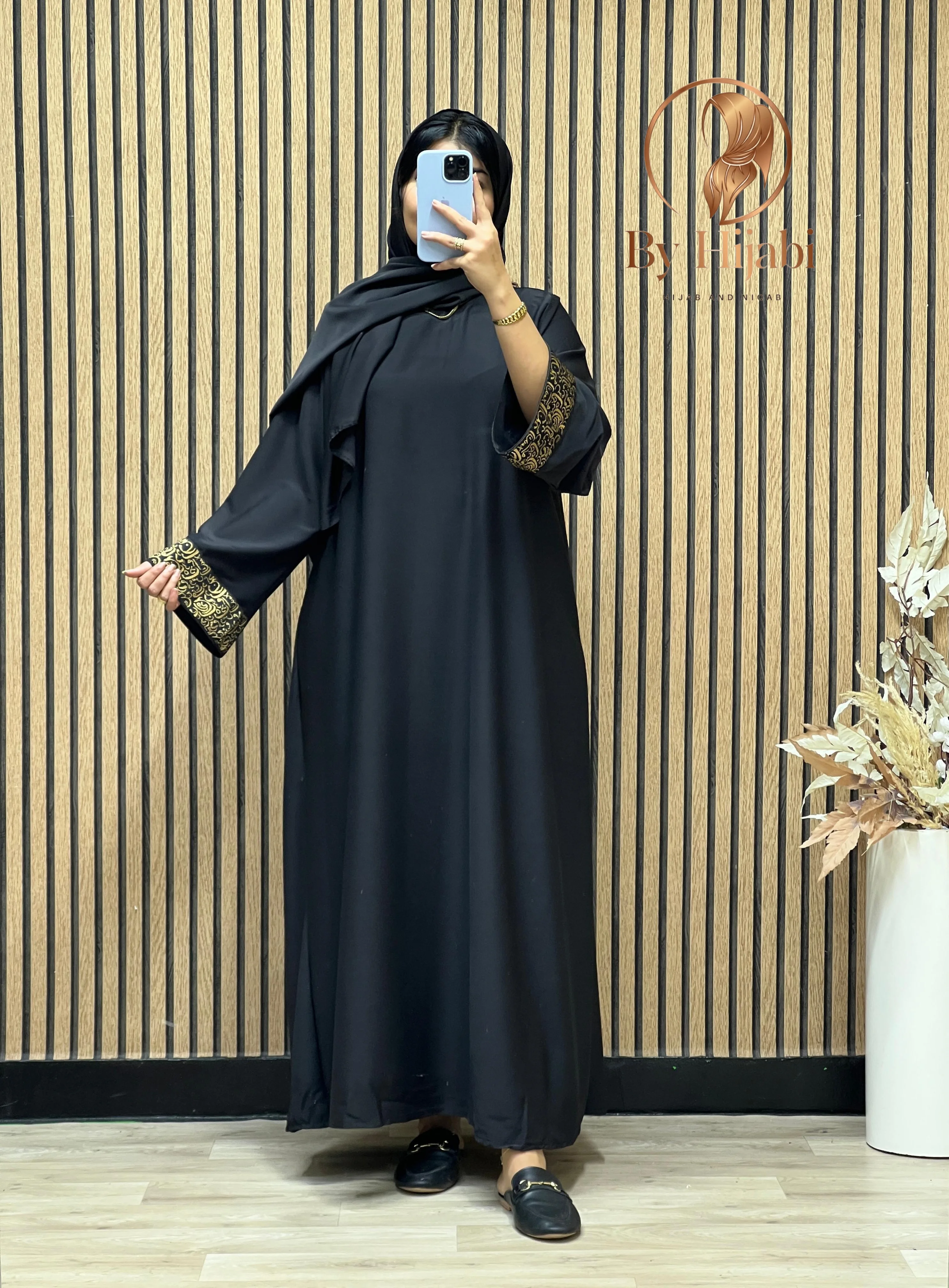 Abaya Noire Luxe Broderie Or